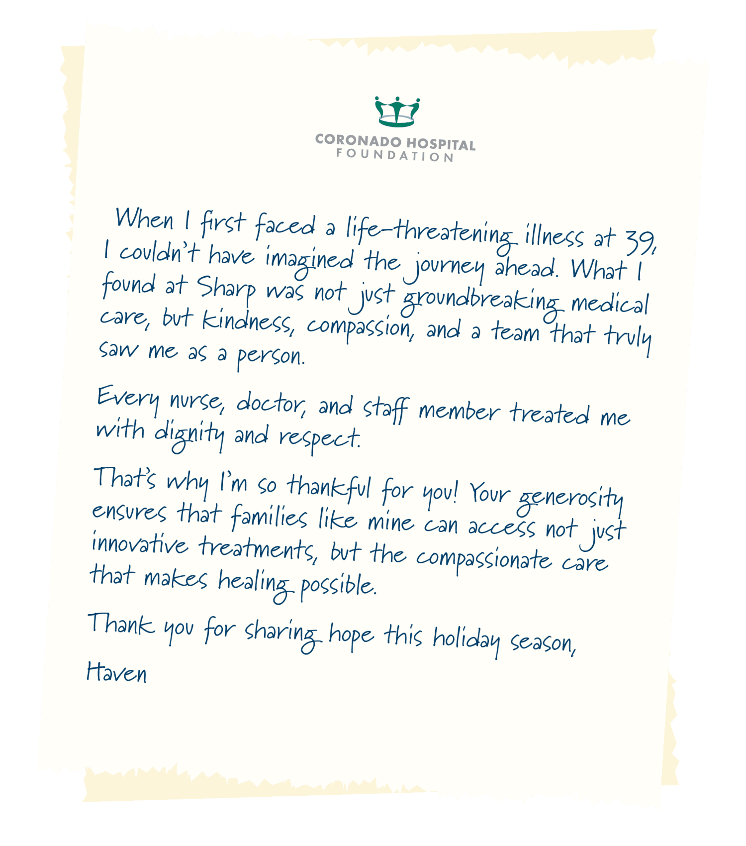 This holiday season, honor and celebrate the extraordinary caregivers at Sharp Coronado Hospital who provide compassion and care to patients like Haven.